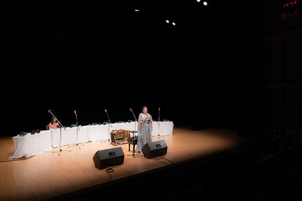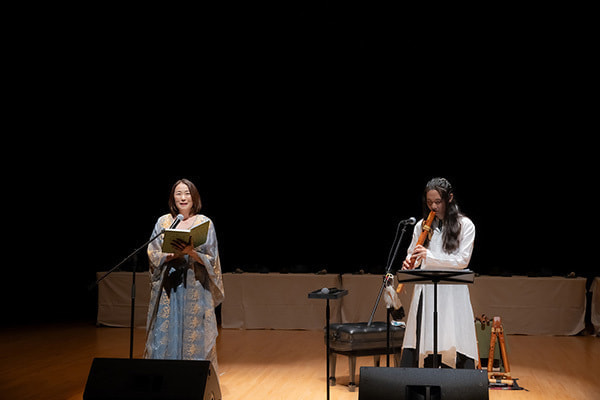 初めて聞く音楽なのに、なぜか懐かしい。乾燥した北米の大地、緑豊かな森の中。あるいは水辺‥‥‥。すり鉢状のホールは古代の円形劇場を連想させ、自分がどこにいるのかわからない感覚に。私たちの身体に刻まれた太古の記憶を呼び覚ますような、時空を超えた音の旅に身を委ねます。