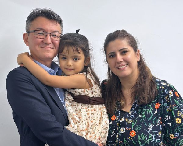 妻のセルギュールさんと長女のネフェス愛花ちゃん(6歳)。