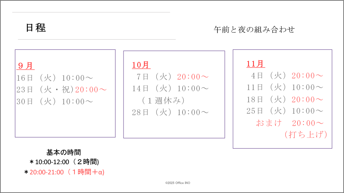 - ・9月9日(火)9:30-10:30AM
