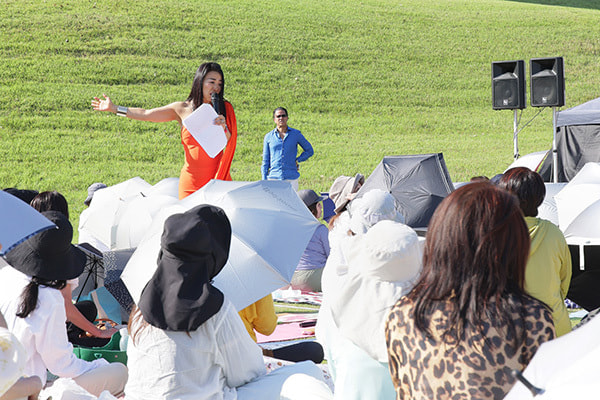 自分の嫌いな部分を反転させて好きになるワーク、誰にでも備わっているカリスマ性を取り戻すための自分の野生を感じるワーク、過去を許すワーク、感情を解放するワークなど、次々と実践。参加者は広い会場を移動したり、芝生の上に寝転んだりしながら、思い思いのスタイルでワークを体験し、さまざまな角度から体と心にセルフラブを落とし込みました。