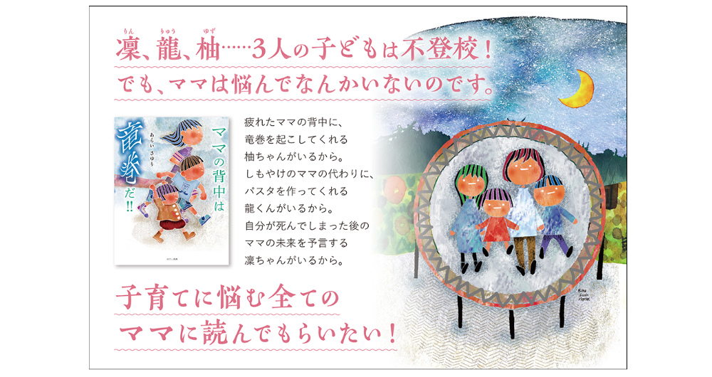 中学生と小学生、3人の子どもが不登校になって5年、子どもたちとの日常を綴ることで「悩むママがホッとしたり自身の気づきにつながれば」という思いから出版に至りました。
