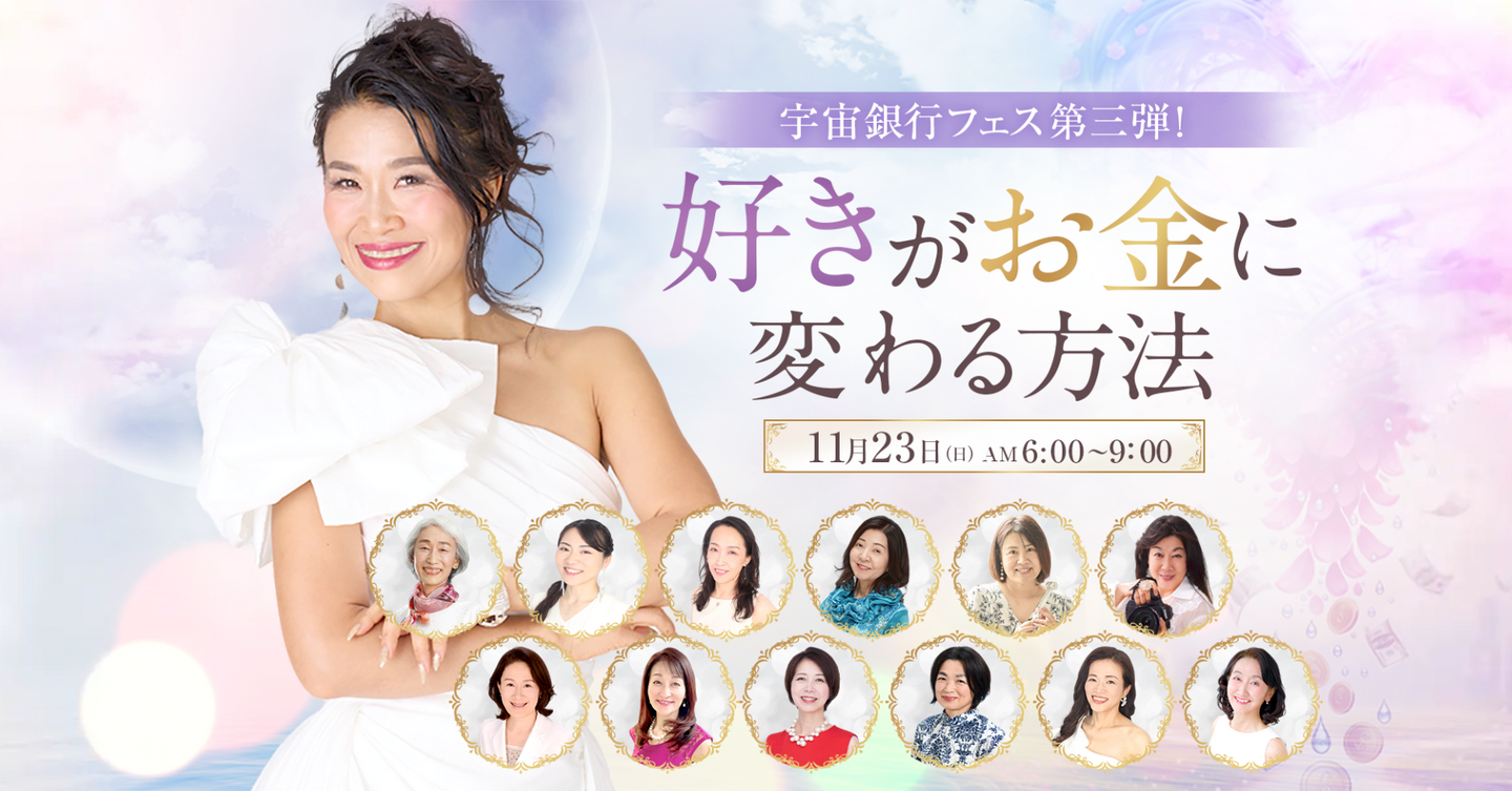 セミナーおよび各種講座の企画・開催、企業研修、コンサルティングなどを手掛ける株式会社ブリッジインターナショナル(本社:東京都港区、代表取締役・小熊弥生)は、2025年11月23日にオンラインイベント「好きがお金に変わる方法」を開催します。本年2月に出版した『宇宙とつながれば「億」が来る!』が好評で、これをテーマにした第三弾のイベントとなります。
